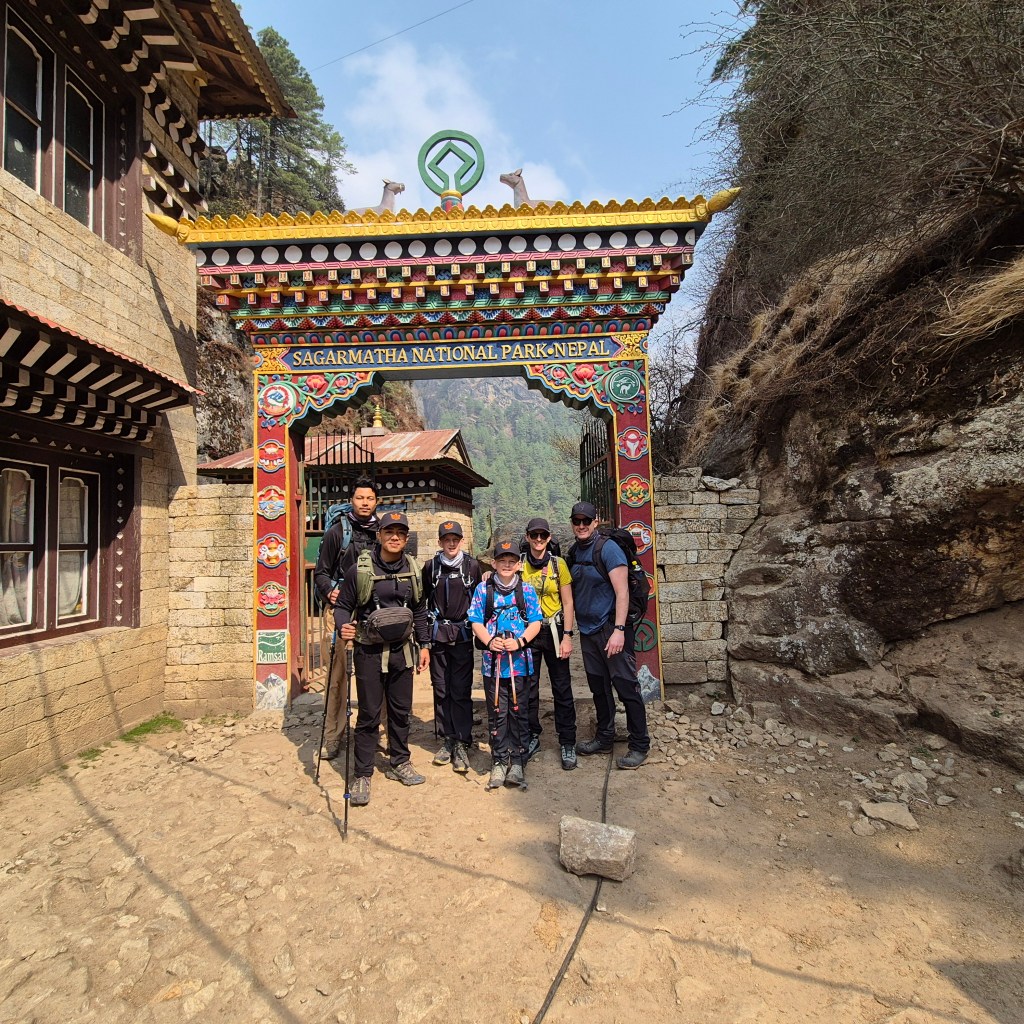 We officially entered Sagarmatha National Park today, marking another significant milestone on our journey. You have to stop at the official checkpoint, which can get quite crowded as permits are checked and luggage is searched. Apparently, they’re looking for drones (which are banned from the National Park), but as before, we breezed through since the trail wasn’t busy.
