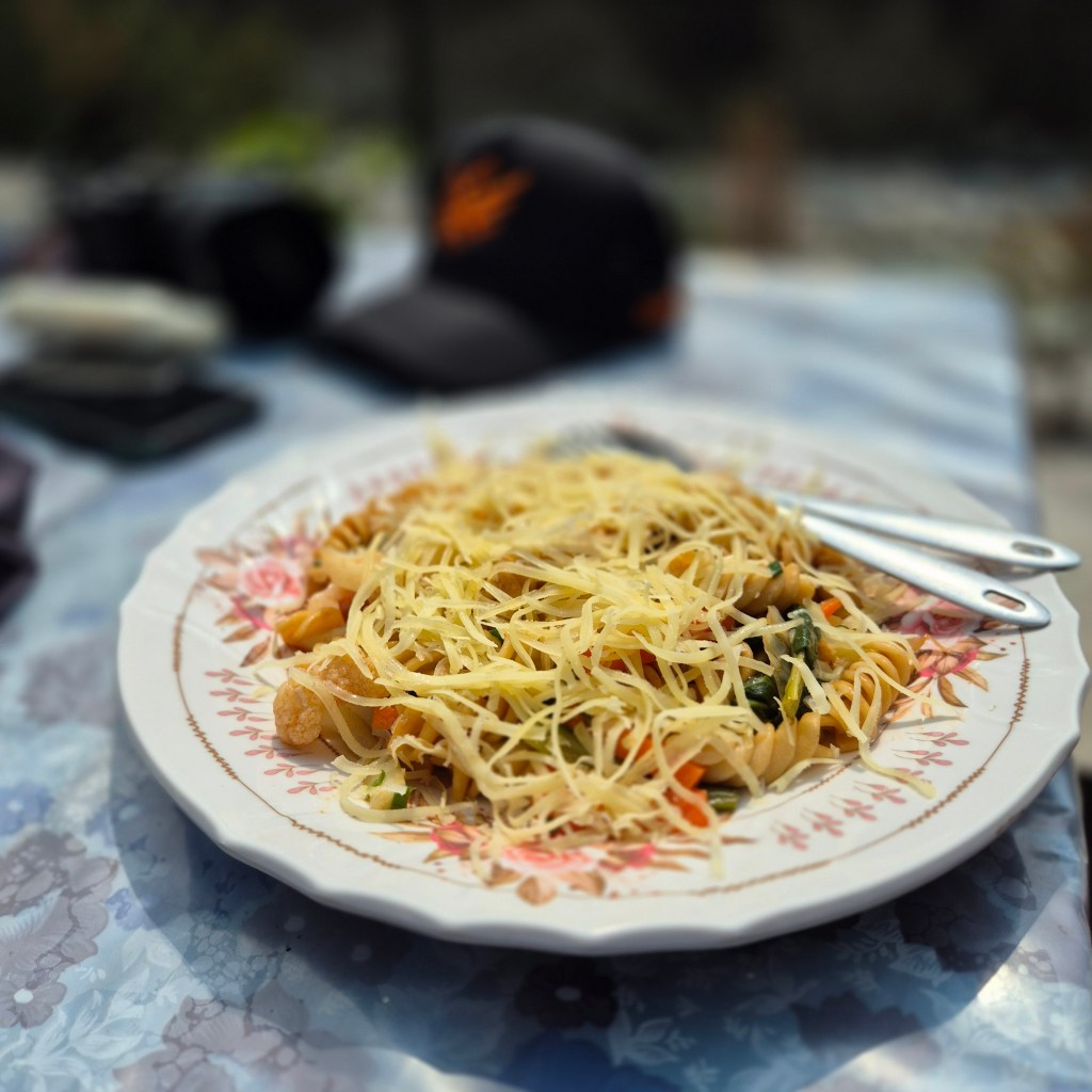 We ventured out for a little walk to buy some tea, enjoying the lively atmosphere of the village. We managed to get our tea at a reasonable price, which was a bonus, and realized yesterday we had been slightly ripped off with our snack buying, as some prices are cheaper here than lower down. Back at the hotel, we had an unexpected encounter on the stairs, meeting Mitch Hutch (he was attempting his now-record of the ultimate triathlon: swimming, cycling, and then hiking from London to the top of Everest). He seemed like a genuinely nice guy, and it was a shame the boys weren’t with us to say hello, as we had left them in the room to rest up a bit.