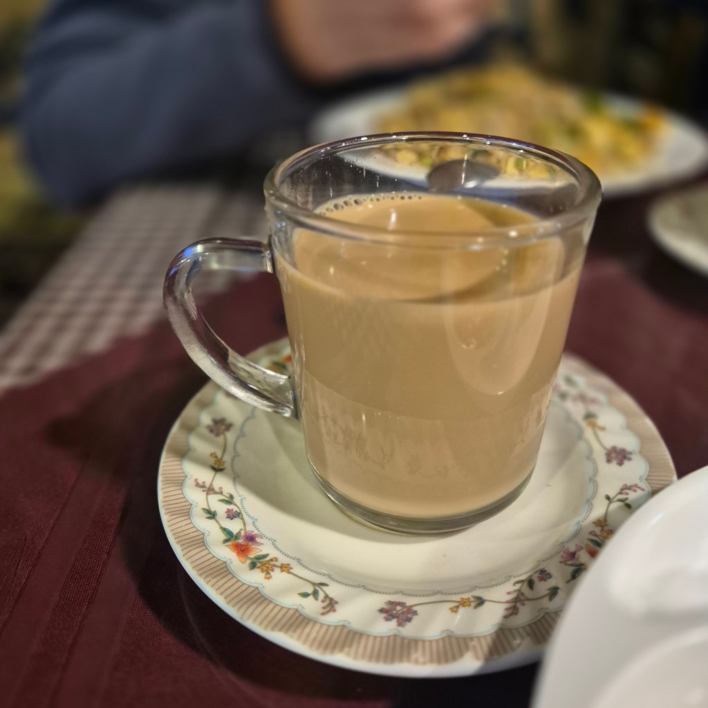 Dinner in the Khumbu Lodge was a lovely affair, featuring a delicious meal of pizza, momos, and fried rice. We’ve also all discovered a new tea (for us) in the form of Masala tea, which has quickly become our go-to order.