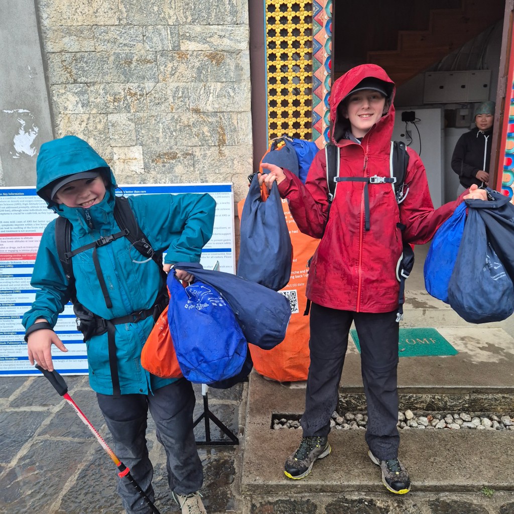 As we continued our uphill climb to Lukla—a final test of our endurance—the rain began to drop heavily. Out came our waterproofs for one last time! On the last push before the finish line, we trudged through the rain and mud, finally making it to Lukla. The feeling of reaching the town was one of pure triumph and immense relief, especially after such a long day on the trail. The sight of the airport and the anticipation of flying out in the morning marked the official end of our incredible trek.