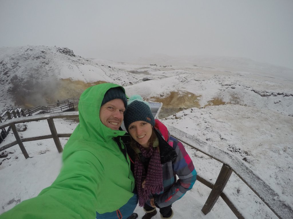 We jumped back in the car and headed a further 10 minutes down the road to Gunnuhver hot spring and geothermal area which in the cold air creates a huge mass of steam with a raucous background noise of a jet engine as the earth spits out hot steam. If you hadn’t smelt it yet then you will definitely get your nostrils stung by the potent smell of the sulphurous egg that the earth creates. Don’t worry you get used to it quite quick and don’t realise it in the air after a few hours 🙂 Again there is parking but we had to drive a little further off the main road on a gravel road to get to the parking just next to the walk way that takes you round the area.