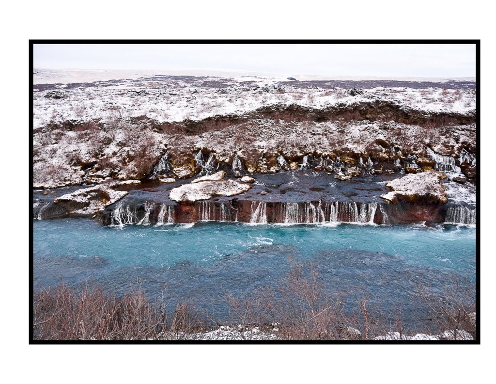 After about 2 hrs of slow driving we arrived at Hraunfossar. It is not your typical spectacular waterfall like the big hitters of southern iceland such as Skógafoss or Gullfoss but it is striking with is blue glacial melt water and well worth a visit in its own right. The water seems to come out of the cliff like a huge spring almost appearing from nowhere.