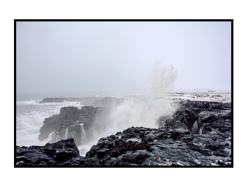 We continued our slow drive through the grey white landscape in awe of the towering volcanic features that protrude out of the ground. We headed along the south coast looking out into the rough seas of the north Atlantic. In an ideal world we would have liked to driven down to Vik and Reynisfjara Beach as it is spectacular but in the short time we had it can’t be done. We stopped at Brimketill lava rock pool which is basically a viewpoint over the cliffs in to the sea with the waves being so large that every so often we would get splashed by the huge swell that was pounding against the cliffs.