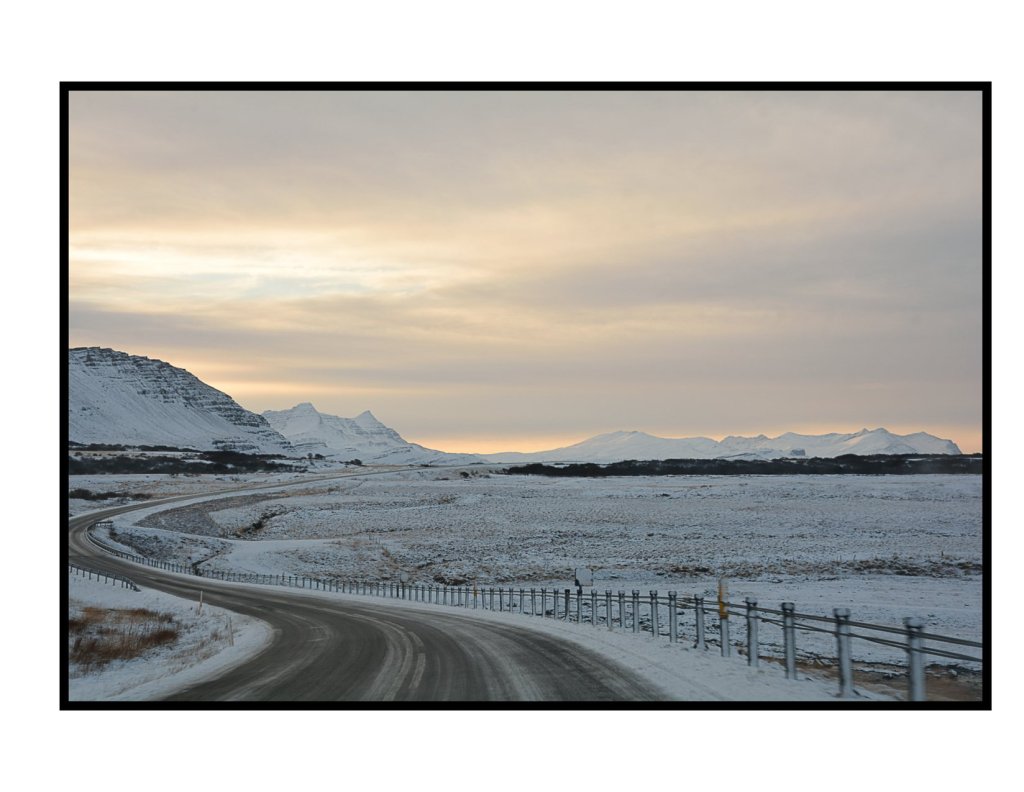 We had breakfast already (brought from home on the plane) and also had packed a lunch picnic so we jumped in the car and drove off into the snow as the sun came up and revealed Iceland winter moonscape scenery.